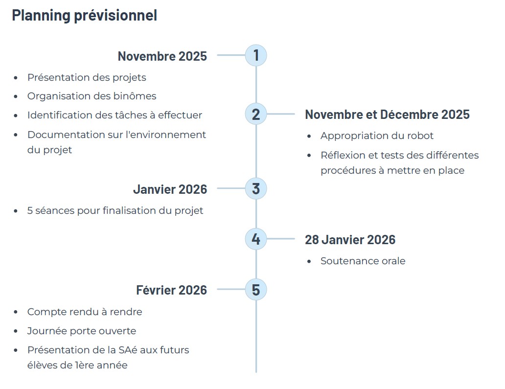 Ce projet de SAE vise à concevoir une chaîne automatisée complète pour la JPO de l'école qui aura lieu début Février. Il s'agit d'un défi technique collaboratif