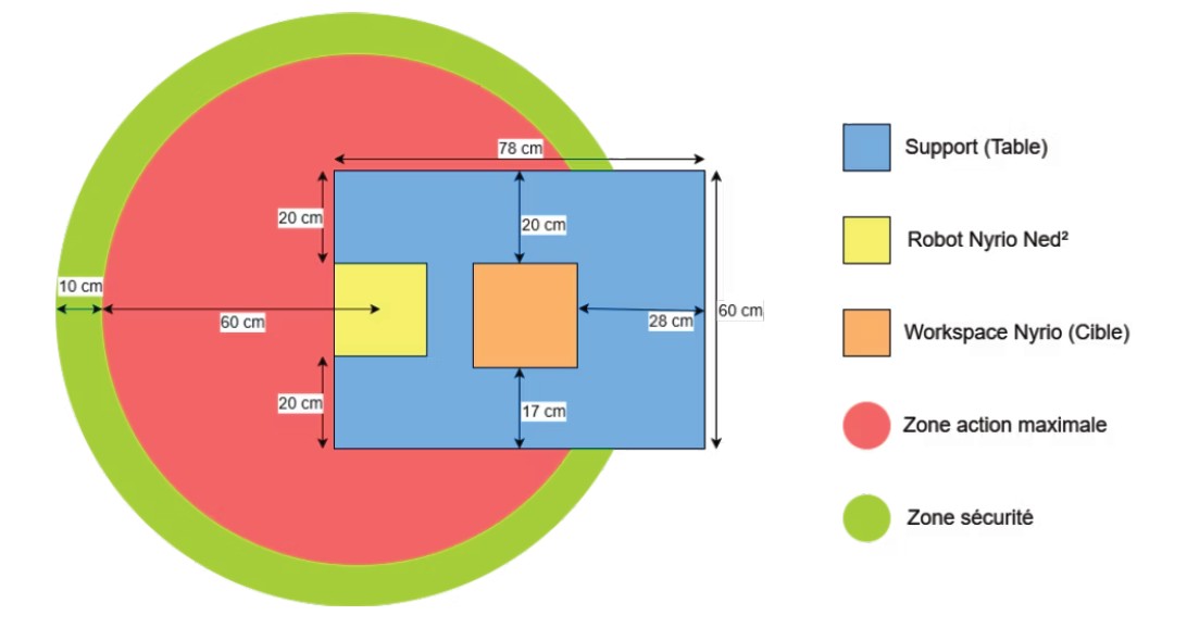 Un périmètre de sécurité a été instauré, délimitant la zone de navigation du SHERPA et l'enveloppe de travail des robots Ned 2.